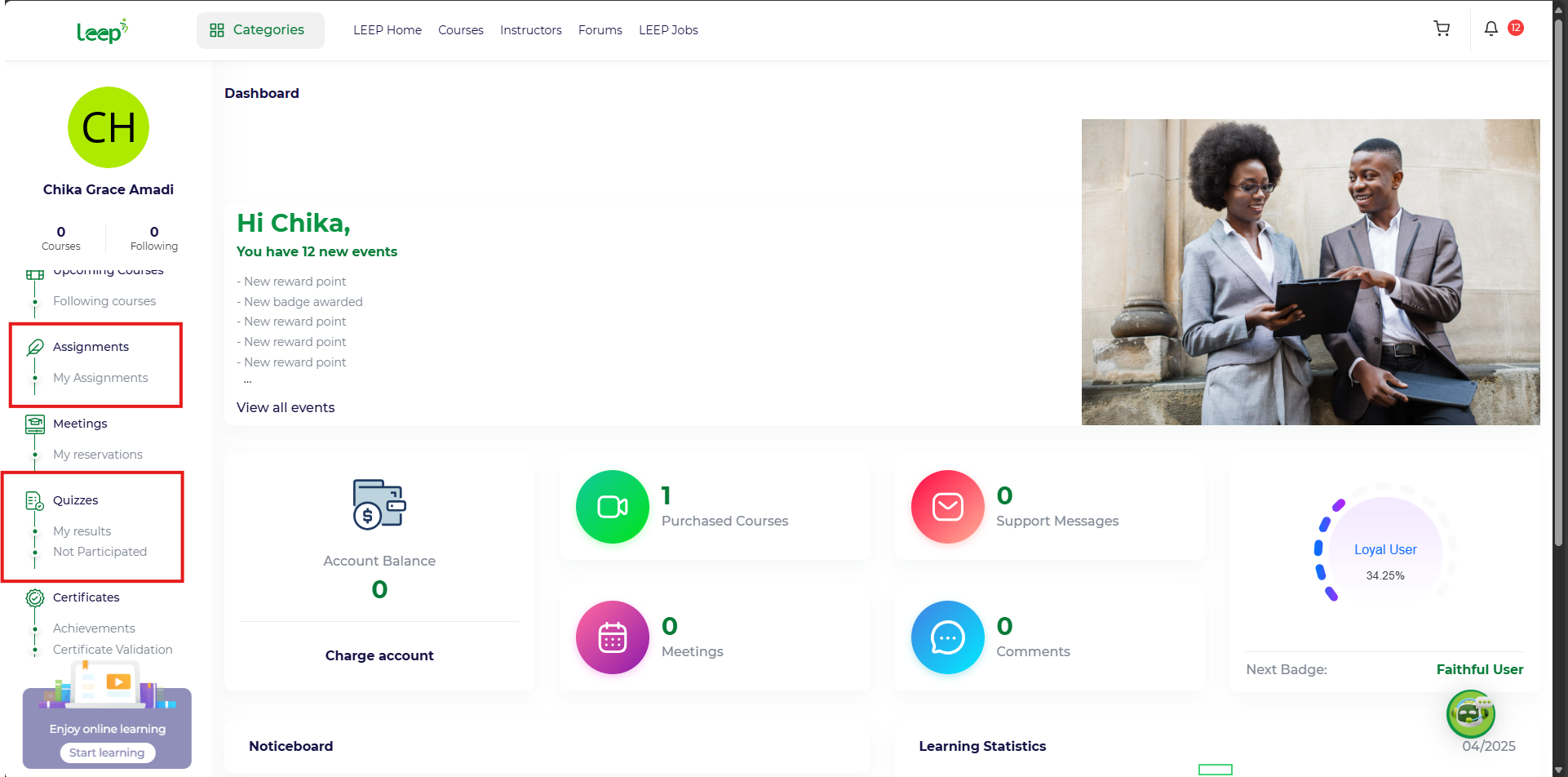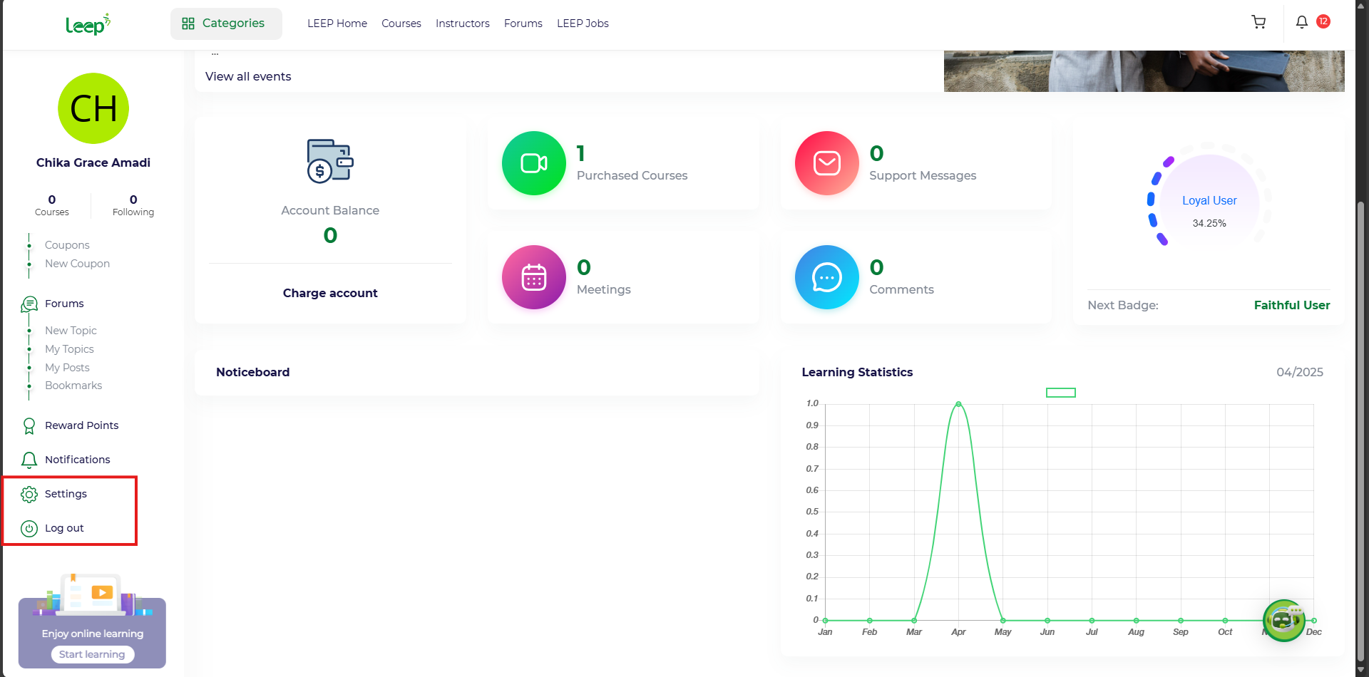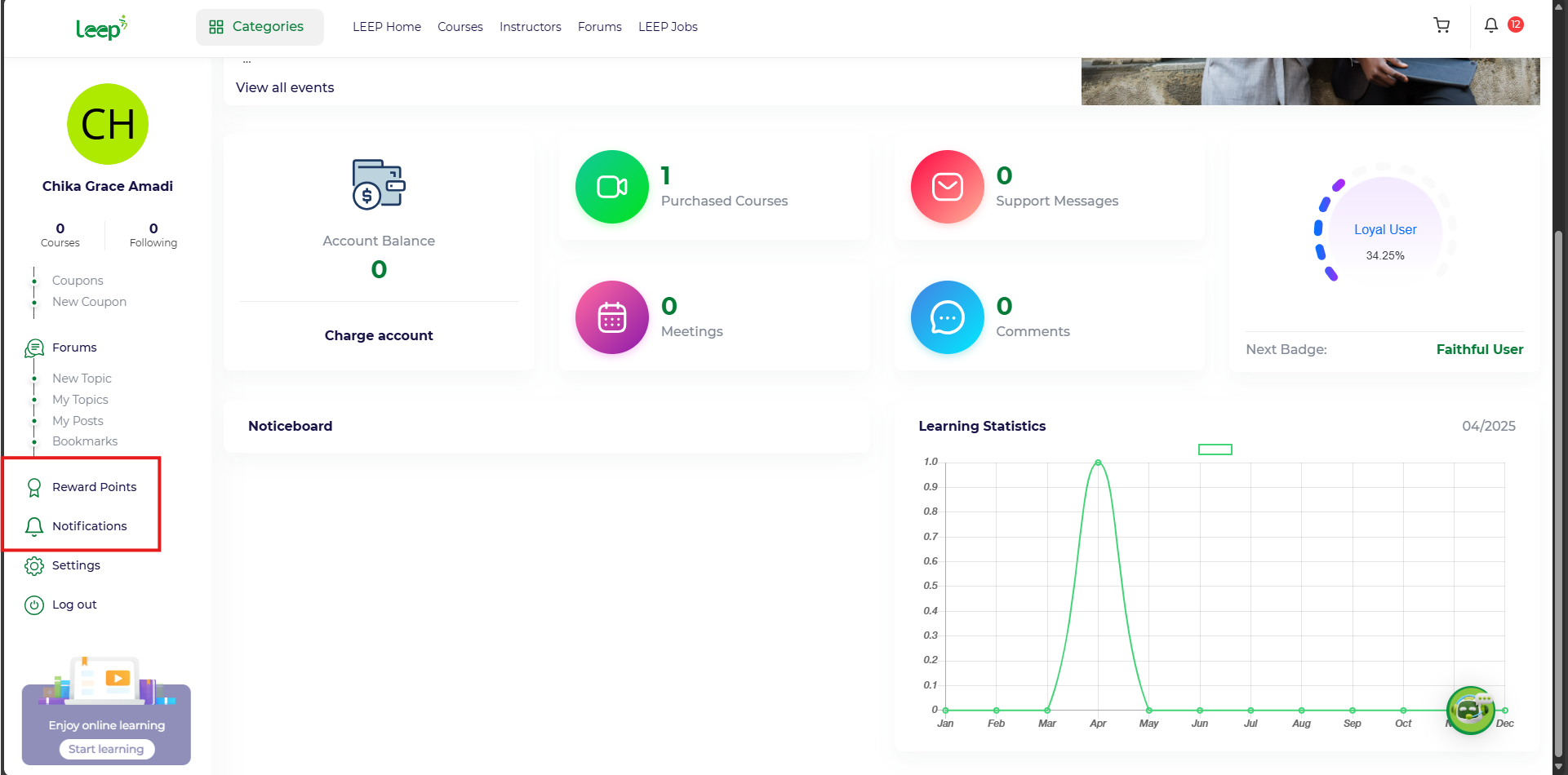 | 💰 Account Balance | Check how much credit you have for purchasing courses. THIS IS NOT APPLICABLE FOR THE LEEP DIGITAL ACADENY, AS ALL THE COURSES ARE FREE. |