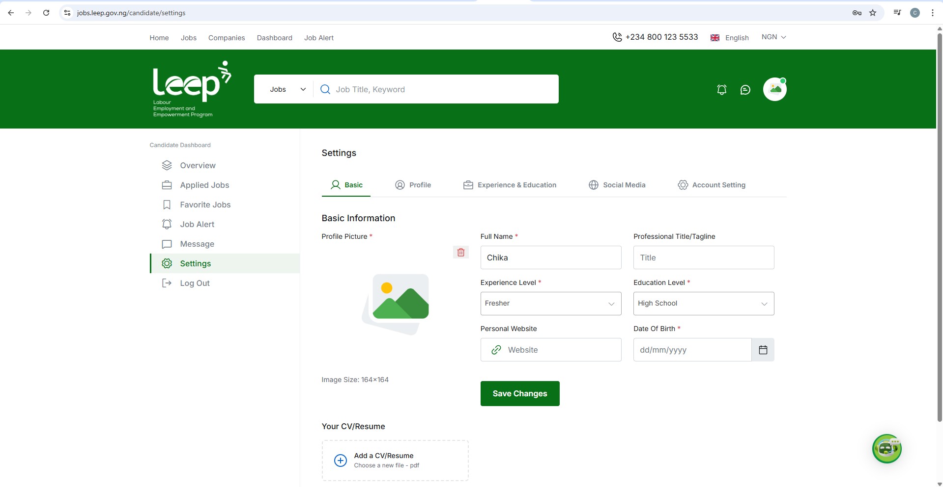 - Upload your CV/Resume – Must be in PDF format, Max size: 3MB