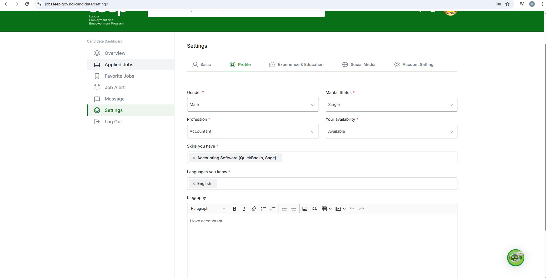 - Choose your Preferred Job Roles from the list (e.g., Accountant, Data Analyst, Graphic Designer, etc.)