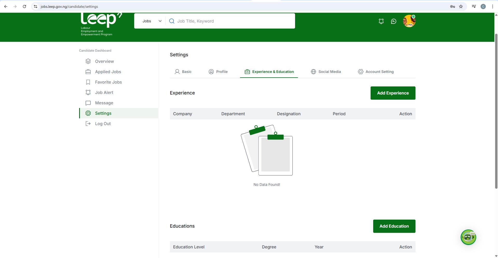 - After logging in, you’ll be directed to your Candidate Dashboard.